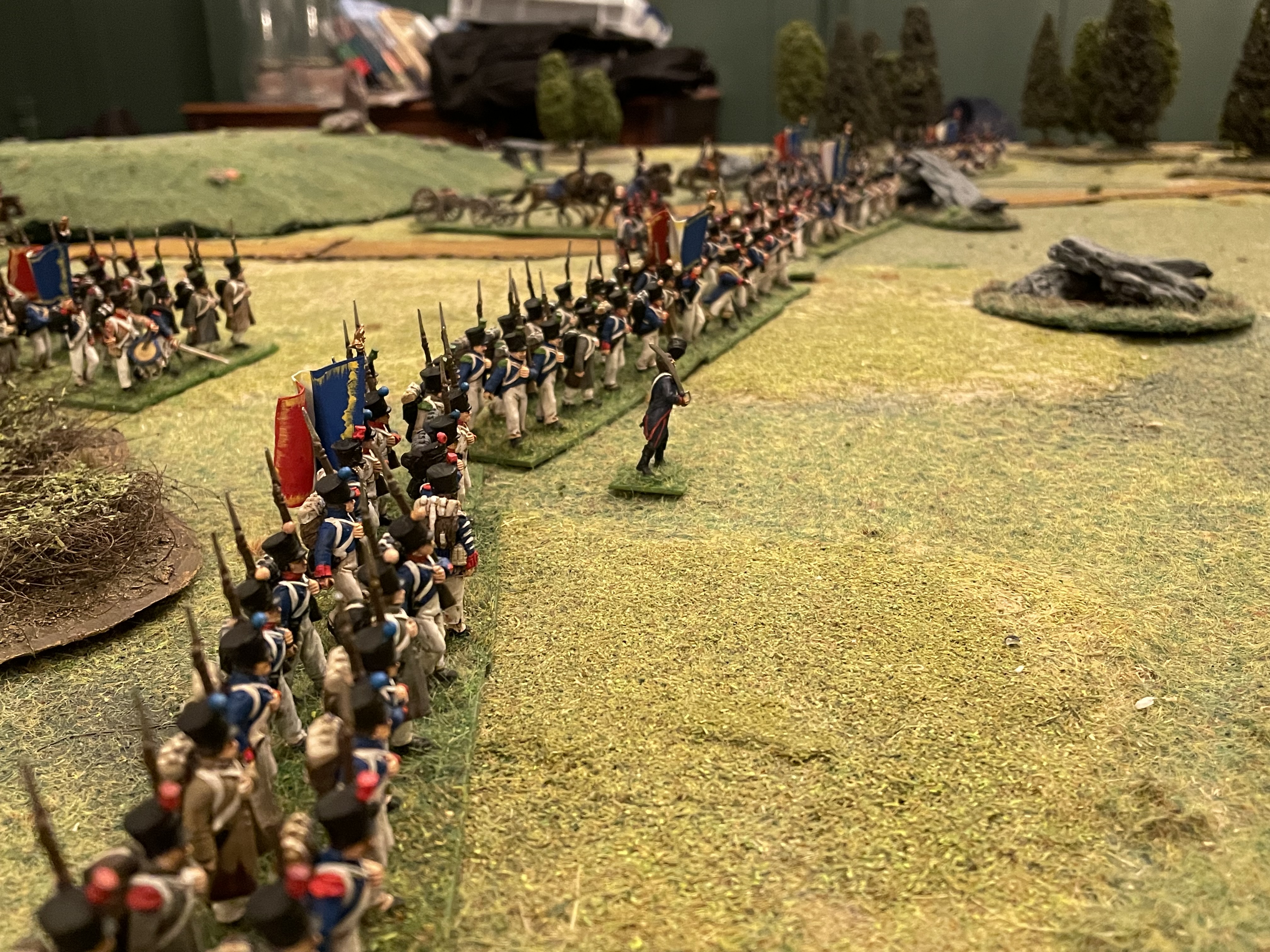 Cannon unlimbers to begin softening those French chappies up, if they sit in column.